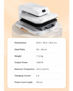 Be the first to review “Automatic Heat Press 38 x 38 cm – White Bundle with Accessories”