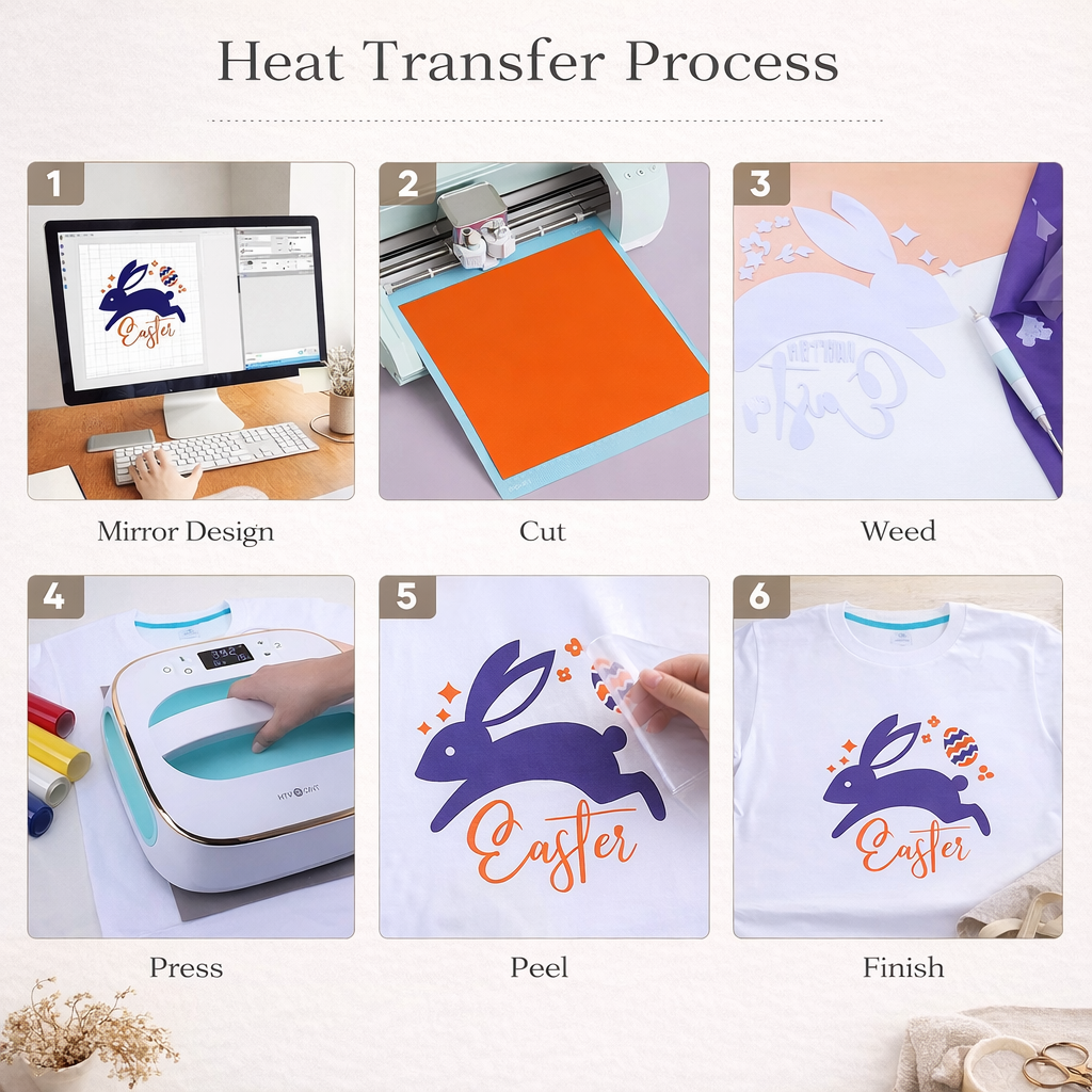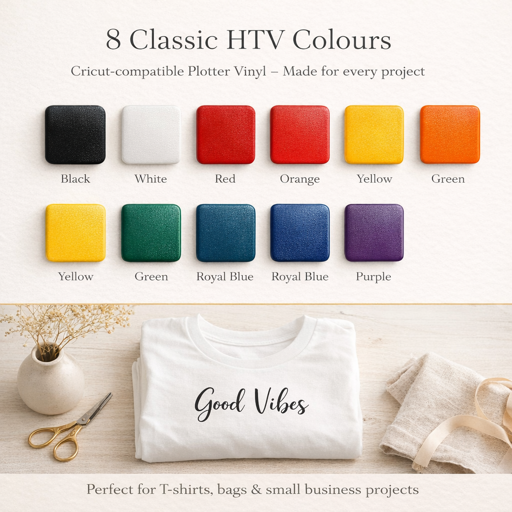 This Cricut-compatible HTV Plotter bundle includes 8 rolls, each 30 × 1.5 m, perfect for T-shirts, tote bags and small business projects. Easy to cut, easy to weed and durable after pressing.