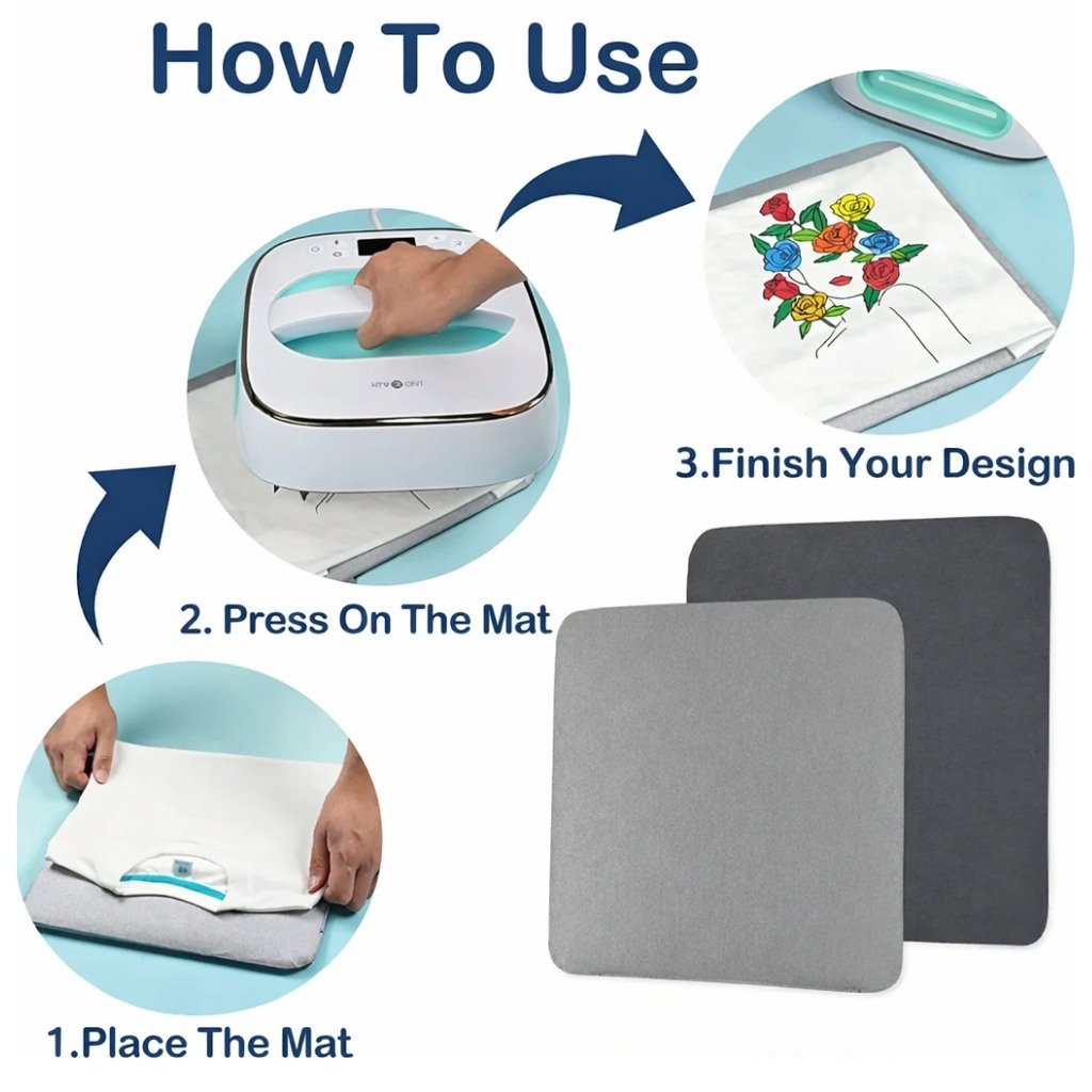 A reliable heat press mat designed to create a flat, stable surface for HTV and sublimation projects. Ideal for home crafters who want consistent, professional results without damaging their work surface.