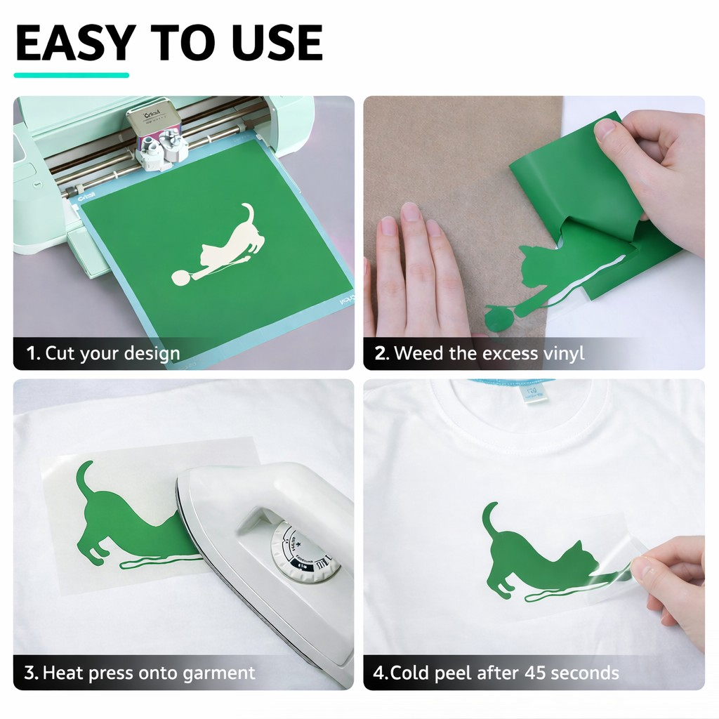 High-quality green PU heat transfer vinyl for precise textile projects. The 30 x 457 cm roll offers generous length for multiple designs and is suitable for detailed cuts and clean results.
