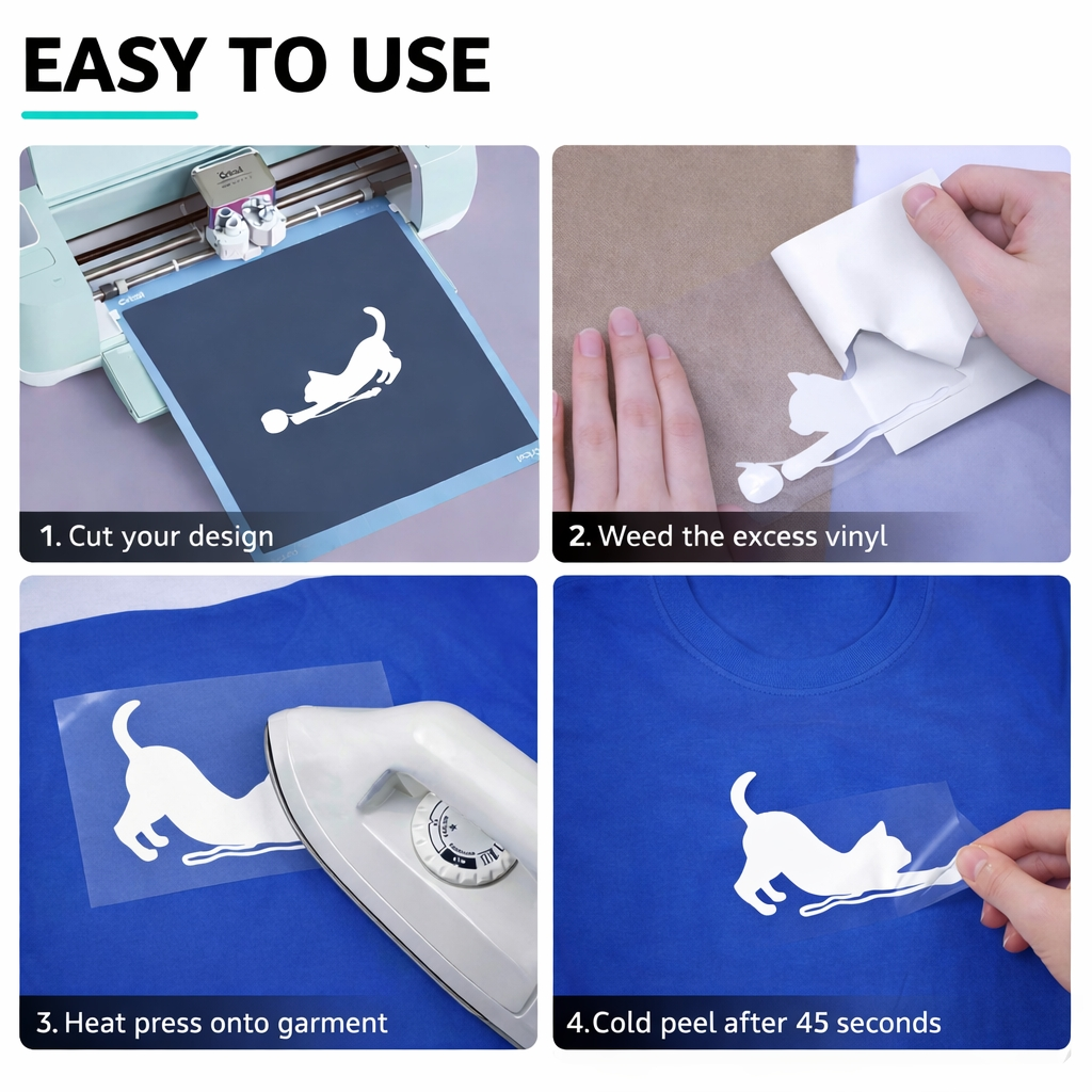 High-quality white PU heat transfer vinyl for precise textile projects. The 30 x 457 cm roll offers generous length for multiple designs and is suitable for detailed cuts and clean results.