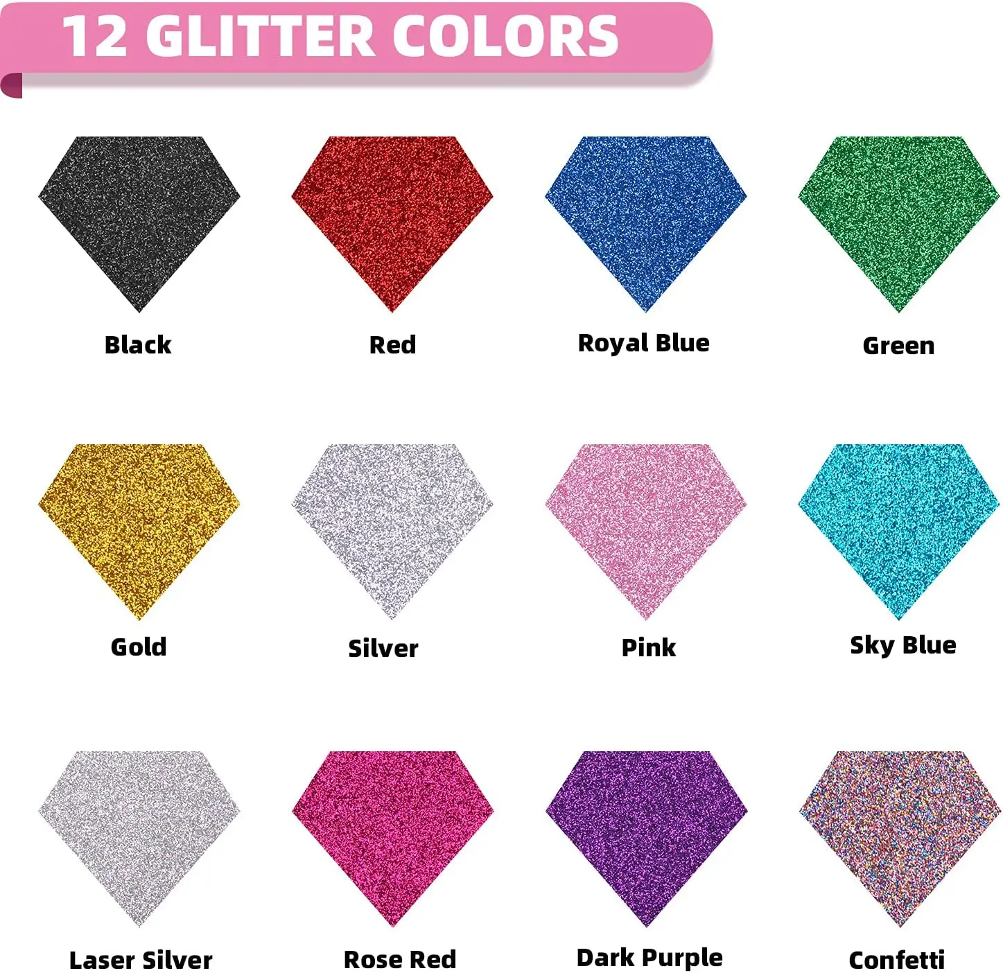 Add sparkle and shine to your projects with this 12-pack of glitter heat transfer vinyl rolls. Each roll measures 25 × 150 cm, giving you plenty of material to make dazzling designs for T-shirts, bags, festive décor, and personalised gifts.