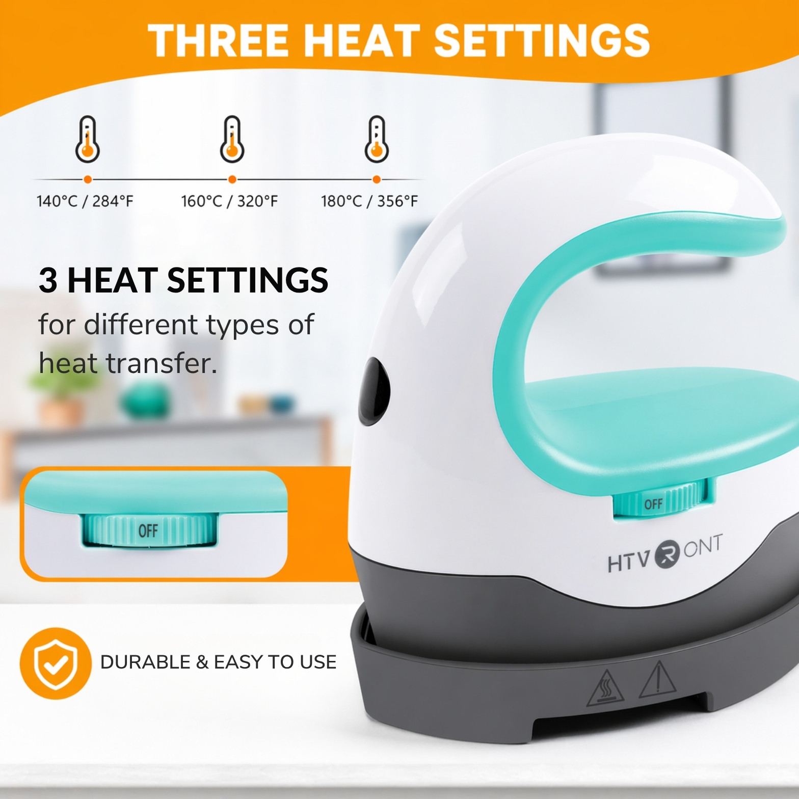 The three temperature settings allow you to adjust the heat depending on the material, including heat transfer vinyl (HTV), iron-on films and sublimation designs. This helps ensure reliable adhesion and consistent results across different projects.